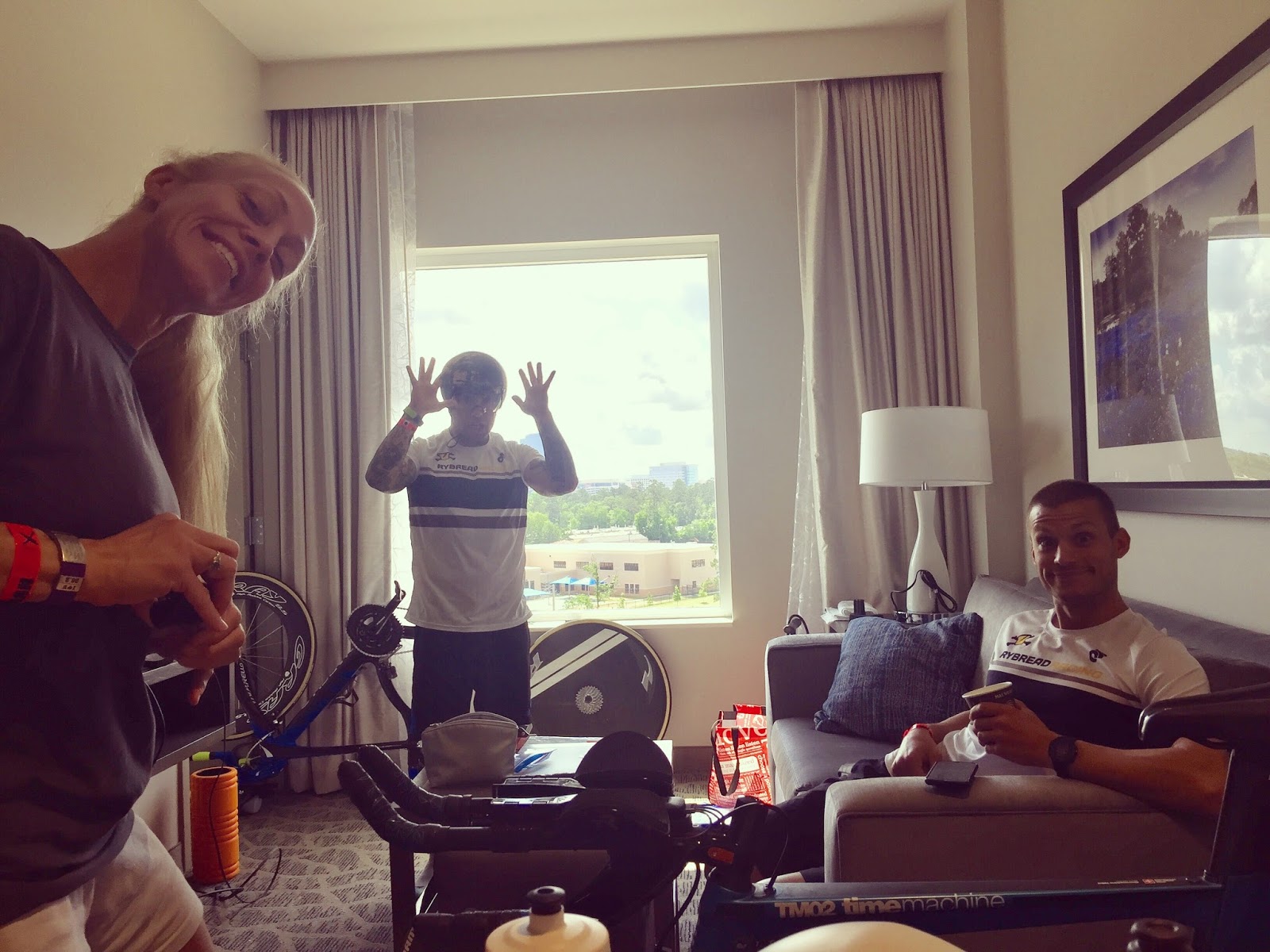 Ryan and I hopped on our bikes for one last shakeout spin. Thankfully, I had Ryan with me. The entire trip I appointed him as the navigator, whether we were in the car or on our bikes. He told me where to go. Every. Single. Time. And he hated it {I could tell.} But this particular time was appreciated as he knew exactly where to take us to ride the same pre-race route we rode last year that had a perfect long stretch with no traffic so we could really open up our legs. On the way home, we took that right had turn onto Sawdust Road and my stomach dropped. Less than a half a mile up the road is where Jacqui flipped over her handle bars last year and fractured her hip. I wonder if Ryan knows this is the same spot? Silly question. Less than 90 seconds later we approached the banked curve where I saw Jacqui lie motionless the year prior and I made sure to be aware of my surroundings. No twigs, branches, or road debris in my way. I looked up and saw Ryan sitting up on his bike, head on a swivel looking back at me. We were on the same page, Friend and Coach Speedy G was lookin' out for me. Stepping off my bike gave me a sigh of relief and excitement. Now it's time to run! And run I did. And it felt great. I had sweat dripping from all my crevasses considering it was 90+ degrees. But I was 100% ok with it because race day was supposed to be a high of 75. #winning
